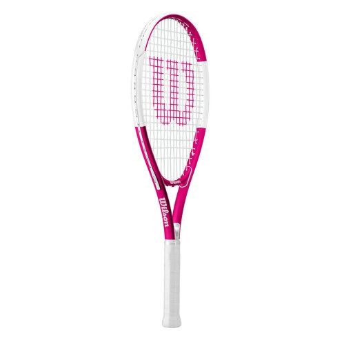 Practice your backswing with the Wilson Intrigue Tennis Racquet. Constructed with AirLite Alloy material, this racquet delivers lightweight swinging, while the Diamond Edge technology provides increased power and maneuverability. The oversize head creates a large sweet spot for improved forgiveness and additional power, and the Stop Shock pads reduce vibrations for comfortable handling.